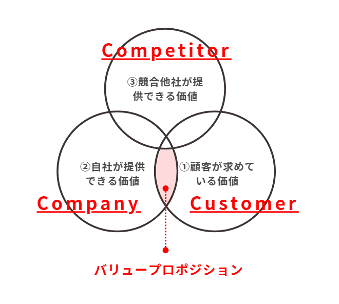 の3つの視点から市場を整理し、自社の戦略を立てるための基本フレームワークです。