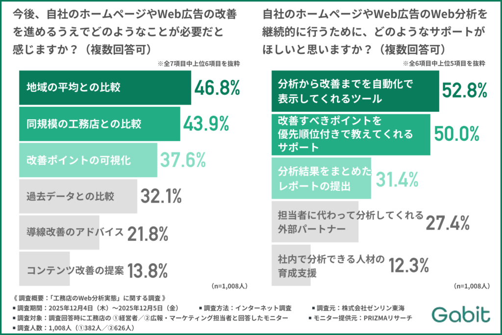 一般的なWebマーケティングのノウハウではなく、あくまで「自社と同じような環境にある工務店」のデータと比較したいという意向が強いようです。